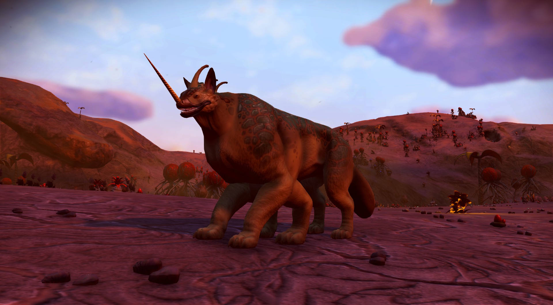 Not really a creature exactly but I found the Space Whale on a planet, from the Hitchiker’s Guide to the Galaxy story books!!! It was an amazing ‘natural’ anomaly created by lighting on the strange terrain. Maybe it is an ancient fossil been there ever since it fell out of space…