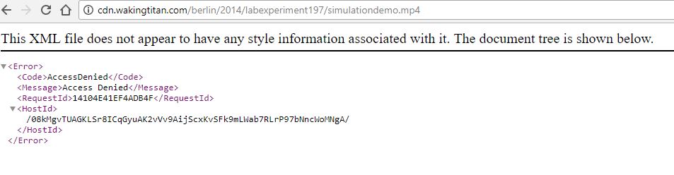 It’s an AWS (Amazon Web services) S3 access denied response. Basically it’s telling you “sorry, you have no permission to access the bucket in which this file is stored”. It does not even imply that the file exists, actually, since you’re getting the error already when trying to access the bucket (think “folder”).