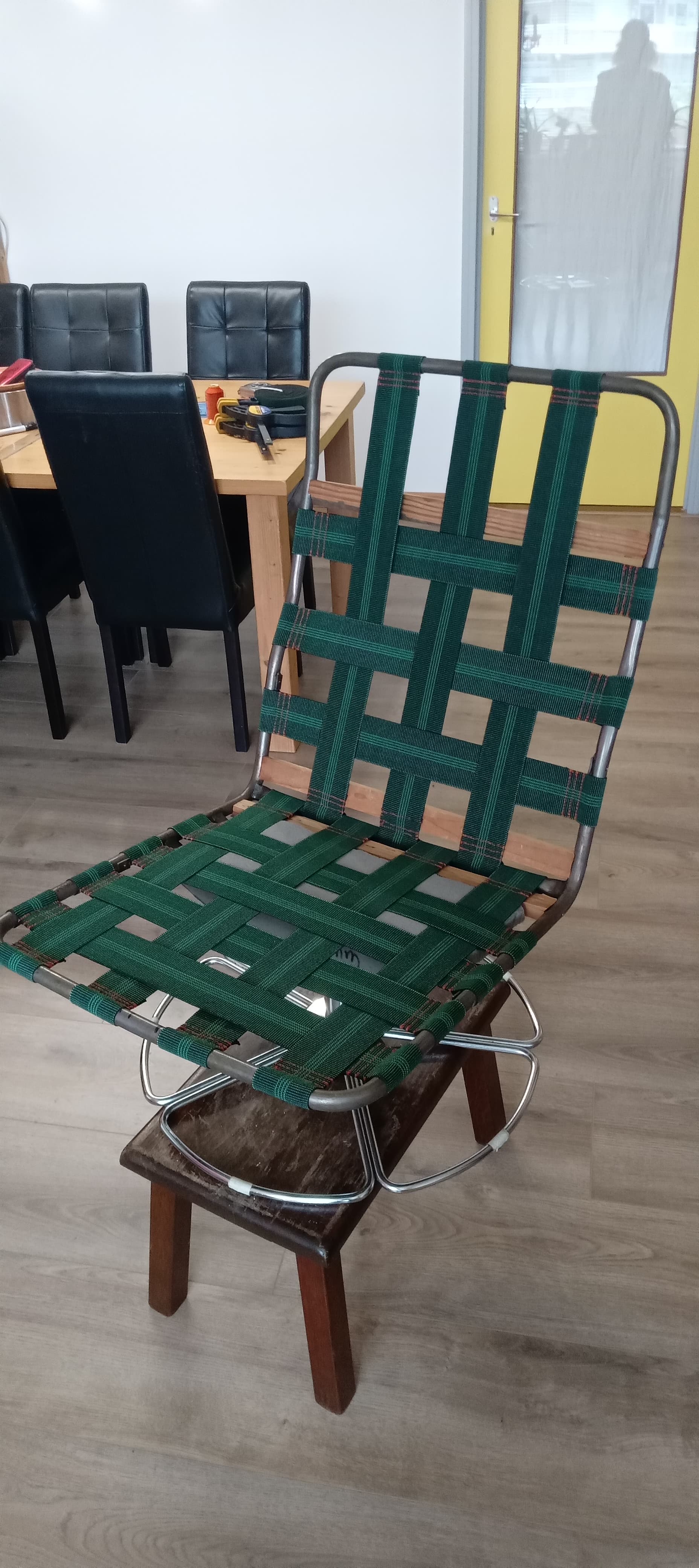 In its current state, that looks very much like I an old beach chair I ‘fixed’ using seatbelts from a car.